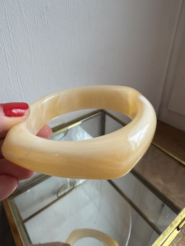 Bracelet jonc résine jaune vanille-blanc.