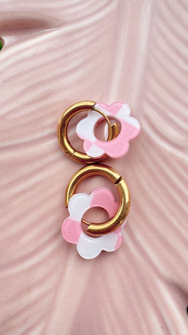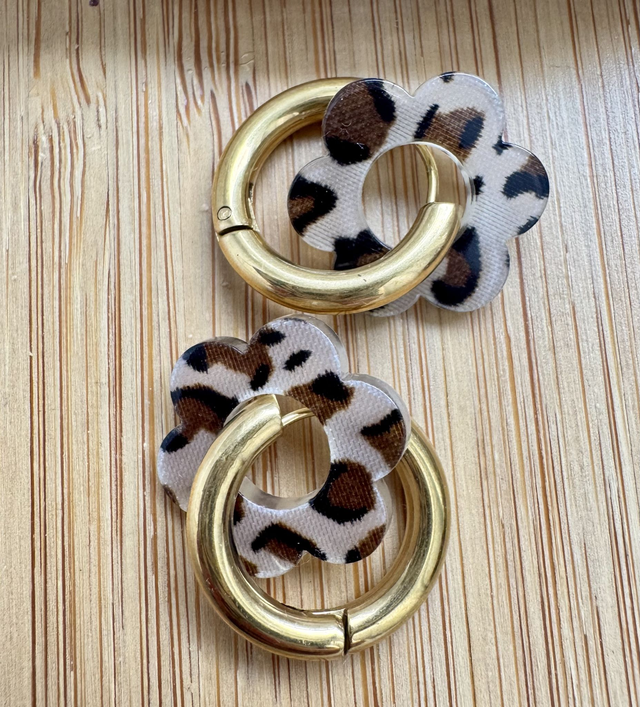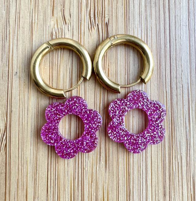 Paire de Créoles rondes 18 mm en acier inoxydable + paire de pendentifs fleurs acrylique ou acétate 18 mm