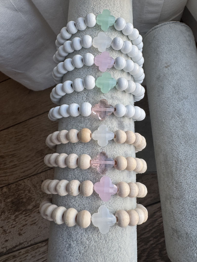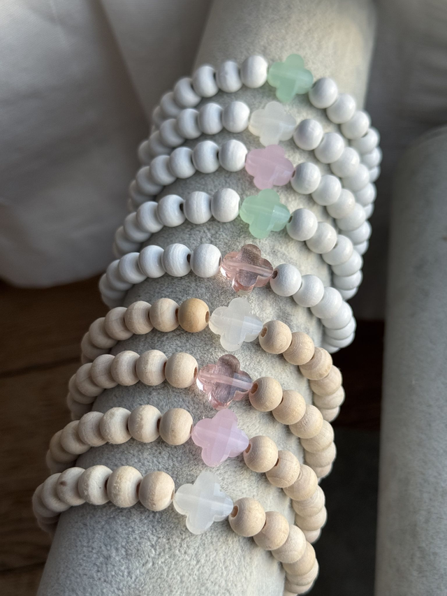 Bracelet perles à facettes fashion trèfle vintage